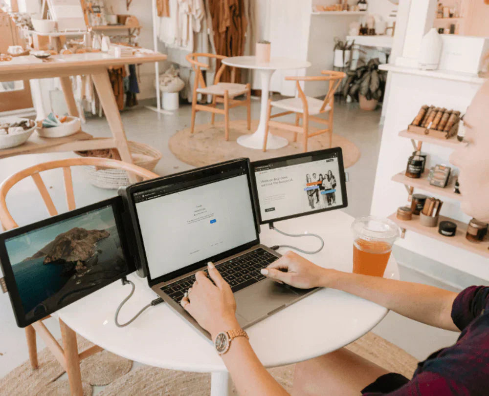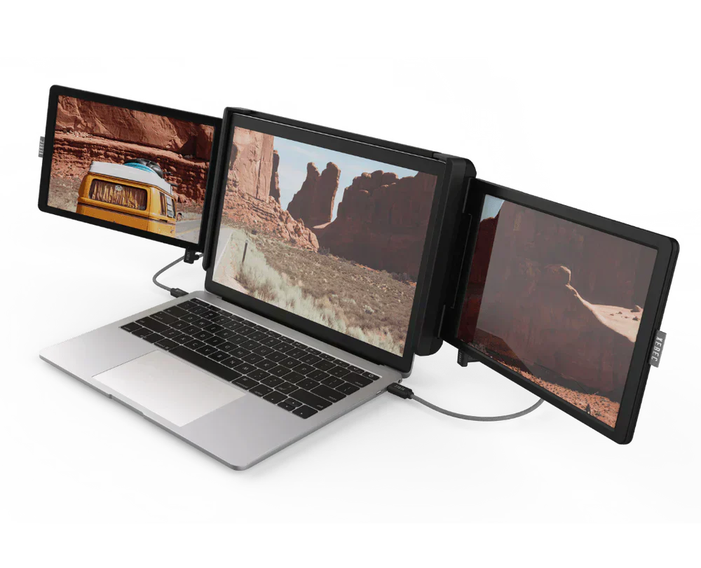 Transform your notebook into an ultra-productive workstation with the Tripart Triple Screen! This innovative accessory adds two extra screens to your computer, giving you an unrivalled multitasking experience. Ideal for professionals, content creators, gamers and students, this product optimizes your workspace wherever you are.